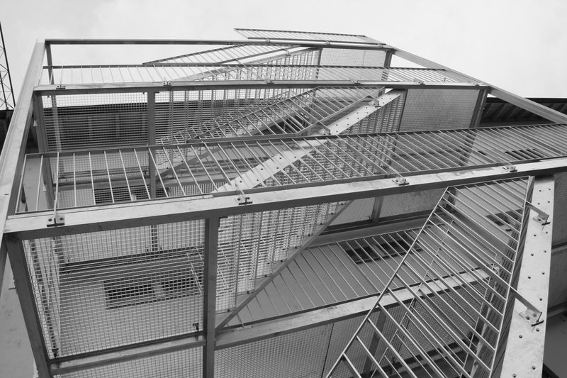 Treppenturm (Nottreppe) über drei Stockwerke. Füllung Gitterroste